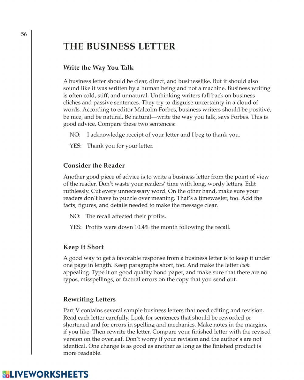 The Business Letter Revising A Business Letter Worksheet Live Worksheets